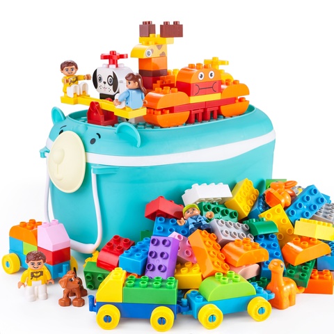 Bloques de construcción grandes para niños, juguete de plástico Abs con caja de ladrillos portátil